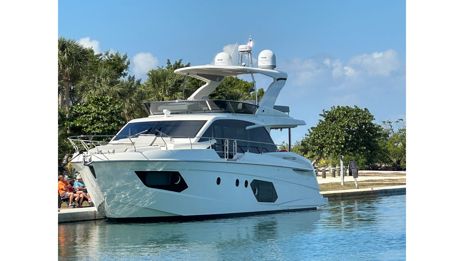 EMERALD is a pristine 2023 Absolute 50 Fly, loaded with options and professionally maintained to a tee. This standout example features the desirable Premium Package, including a Seakeeper 6 gyro stabilizer for comfort at anchor, fiberglass hardtop with sliding hatch, hydraulic swim platform with solid teak floor, bow thruster, and a versatile 4th aft cabin with its own head, shower, and direct transom access—perfect for crew or additional guests.